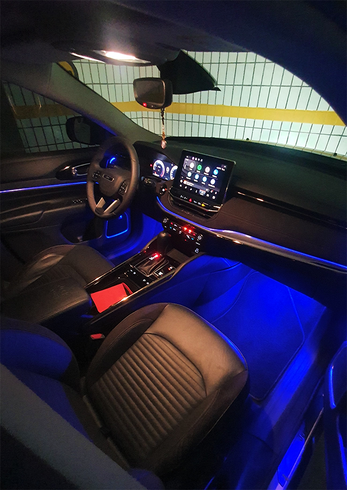 Nosso kit Atmosphere Light traz um upgrade premium para o seu carro, permitindo você selecionar as cores dos leds como desejar!