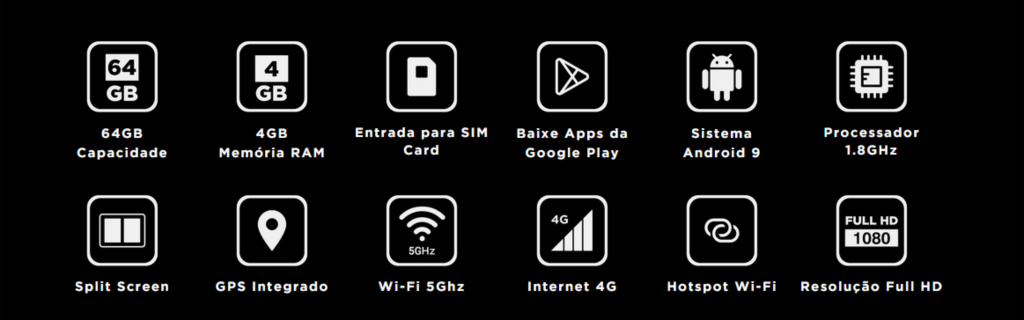 Sua central Multimídia de fábrica, finalmente poderá ser chamada de Multimídia, com músicas, vídeos e navegação online, internet 4G e Wi-Fi para compartilhar com os passageiros.
